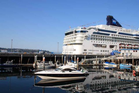 Et stort krydstogtskib havde netop læsset passagerer af. Nogle blev afhentet med mere manér end andre  Seattle er en meget stor krydstogthavn, især for krydstogt til Alaska  Elefanthvidløg i Pike Place Market  Karussel ved Waterfront Park  Frokost i "The Fisherman"  "Ride the Duck" - på land og til vands  Det er populært at blive gift ved dette nedlagte kul/gasværk